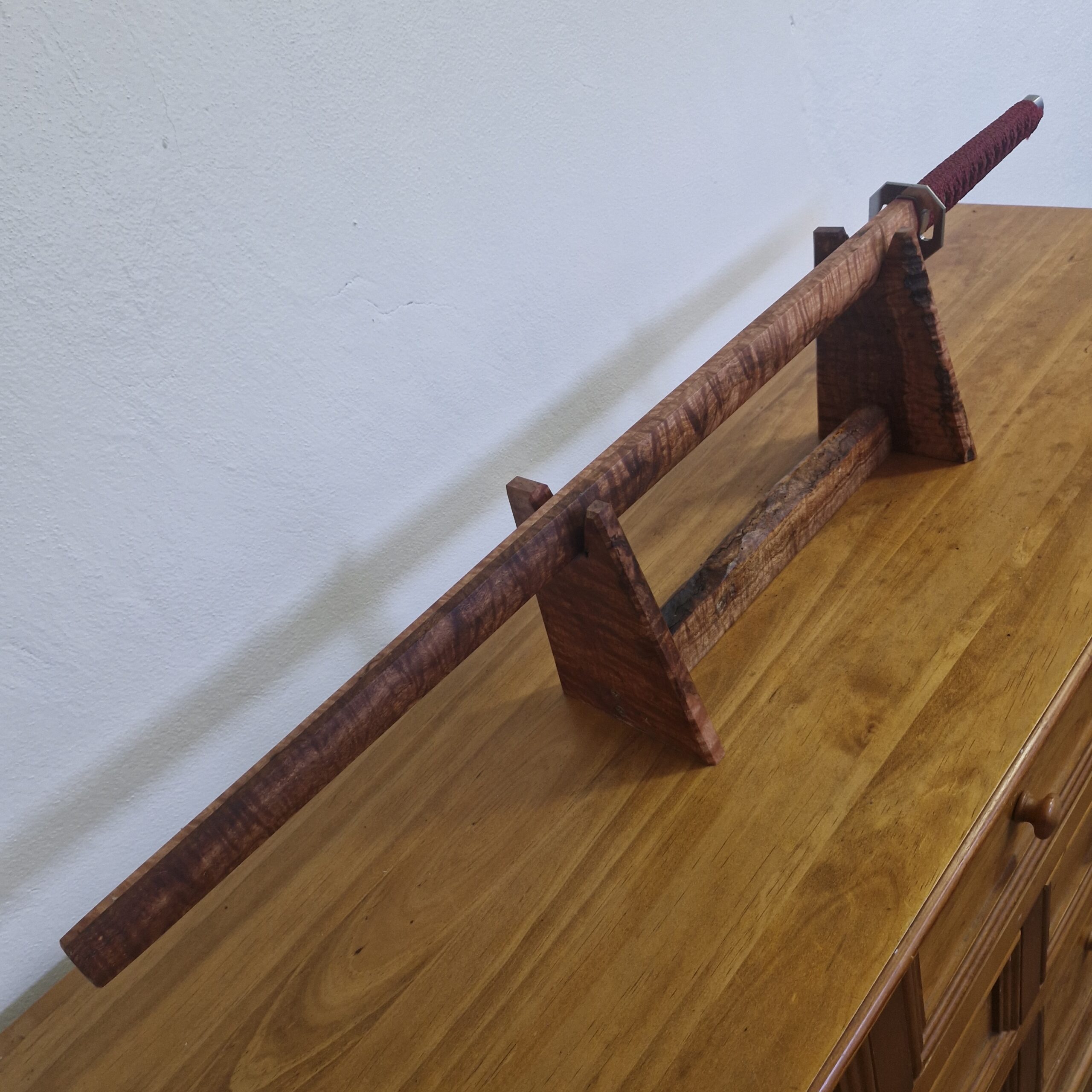Handle : Australian Yellowbox Eucalyptus, with mild and stainless steel fittings, embroidered ito wrap.