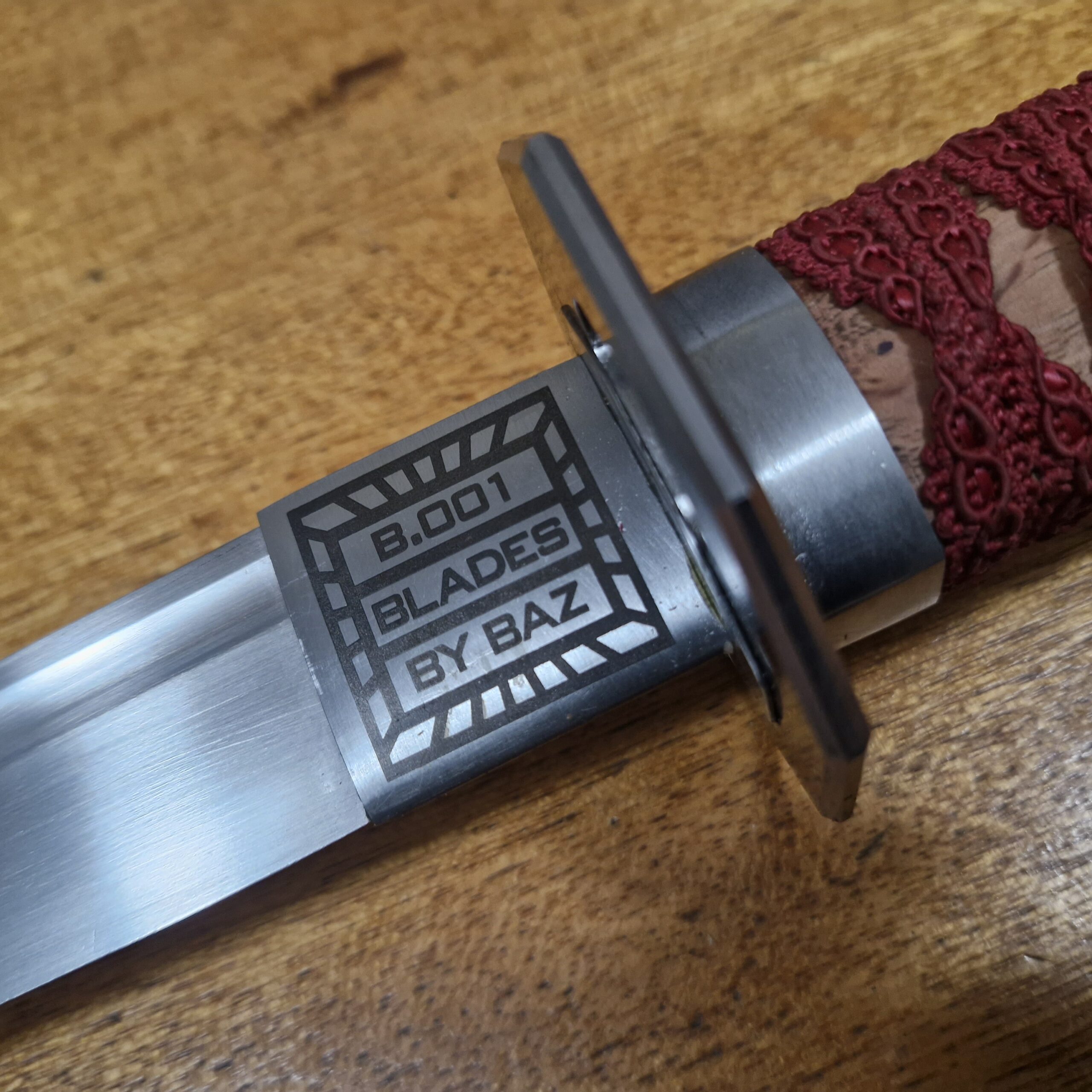 Description: A collectors dream, this first, (B-001) in a series of designs that Baz has planned. Each sword will be unique and evolutionary, blending styles and concepts in a deliberate journey. Each will be lasered with a unique serial number ID.