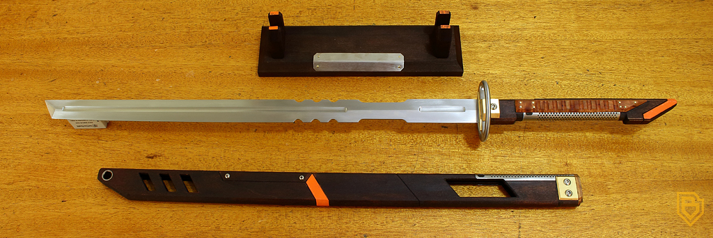 Description: Third in the collection, (B-003) in a series of designs that Baz has planned. Each sword will be unique and evolutionary, blending styles and concepts in a deliberate journey. Each will be lasered with a unique serial number ID.