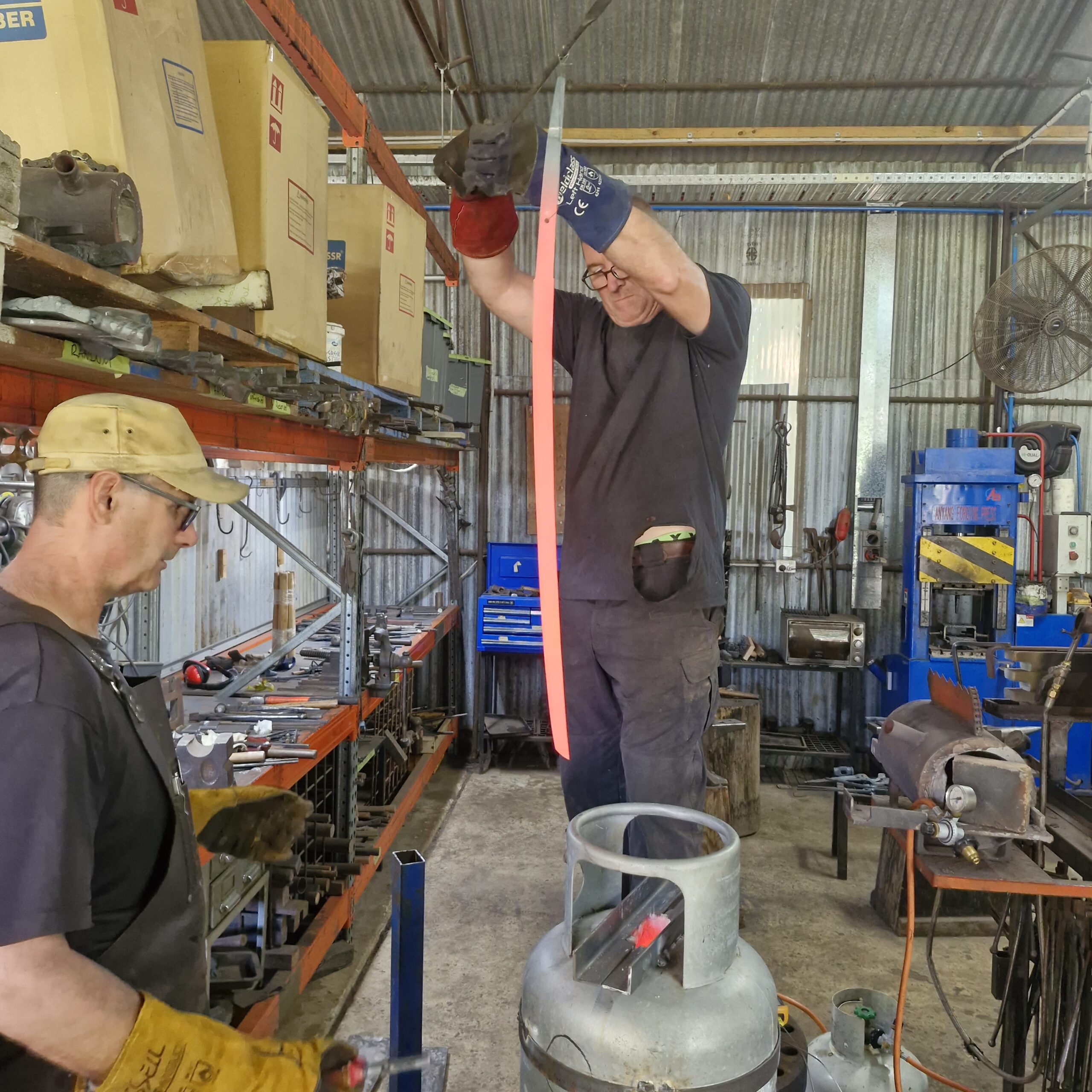 *I have been making knives for twelve years now, seven years full-time as a professional bladesmithing instructor in Australia’s leading bladesmithing school. My forge at home is also fully equipped and has now been upgraded with R&D to accommodate sword-making.